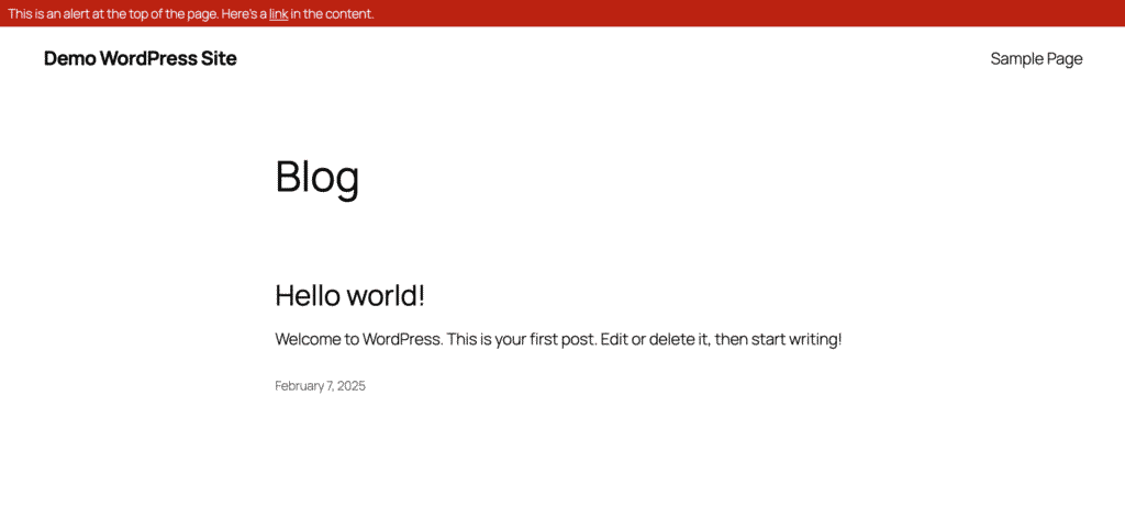 The basic alert bar allows you to display a simple message and button. You can allow users to dismiss this type of alert.