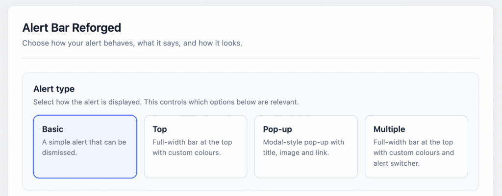 The alert bar provides several options for how to display your message.